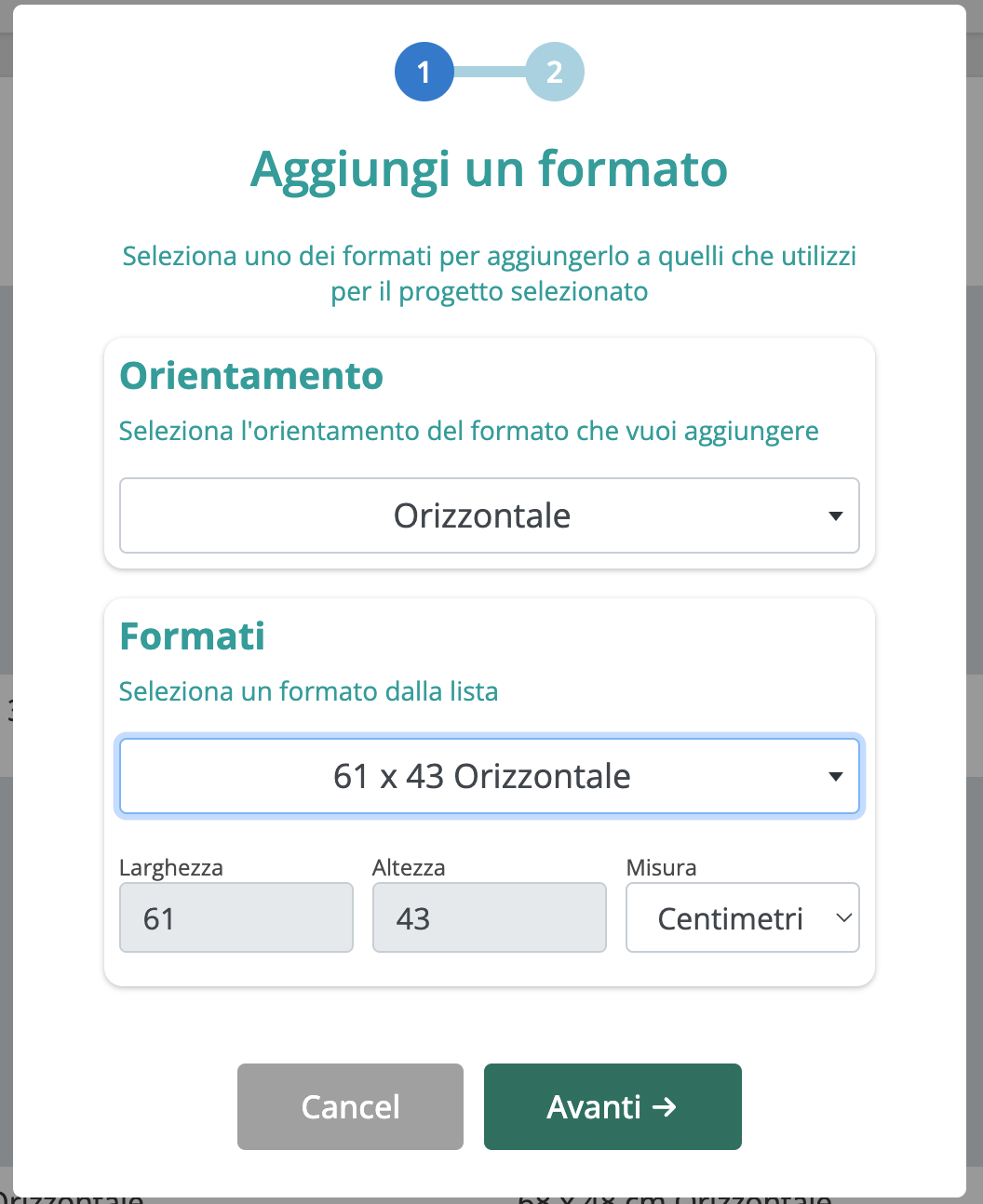 Clicca su Seleziona un formato e seleziona dalla lista il formato che vuoi utilizzare.