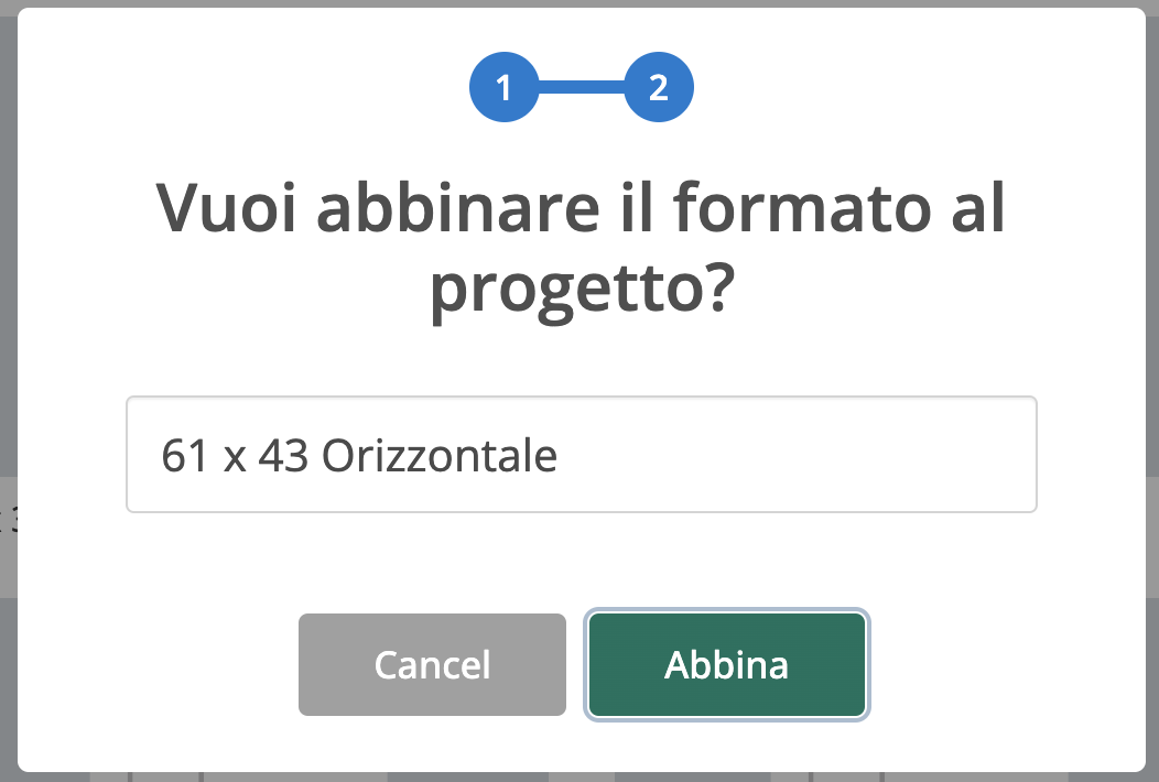 Clicca su Abbina per abbinare il formato al progetto che hai precedentemente selezionato.