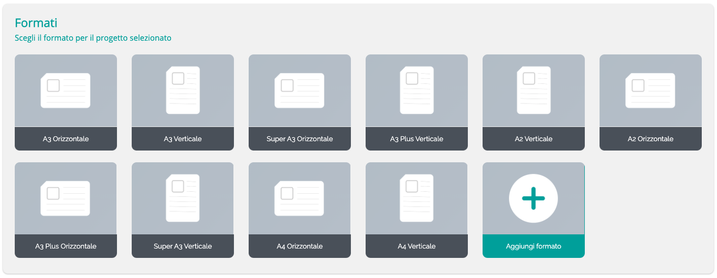 I formati aggiunti al progetto su cui stai lavorando, saranno successivamente selezionabili nella schermata iniziale dei formati.