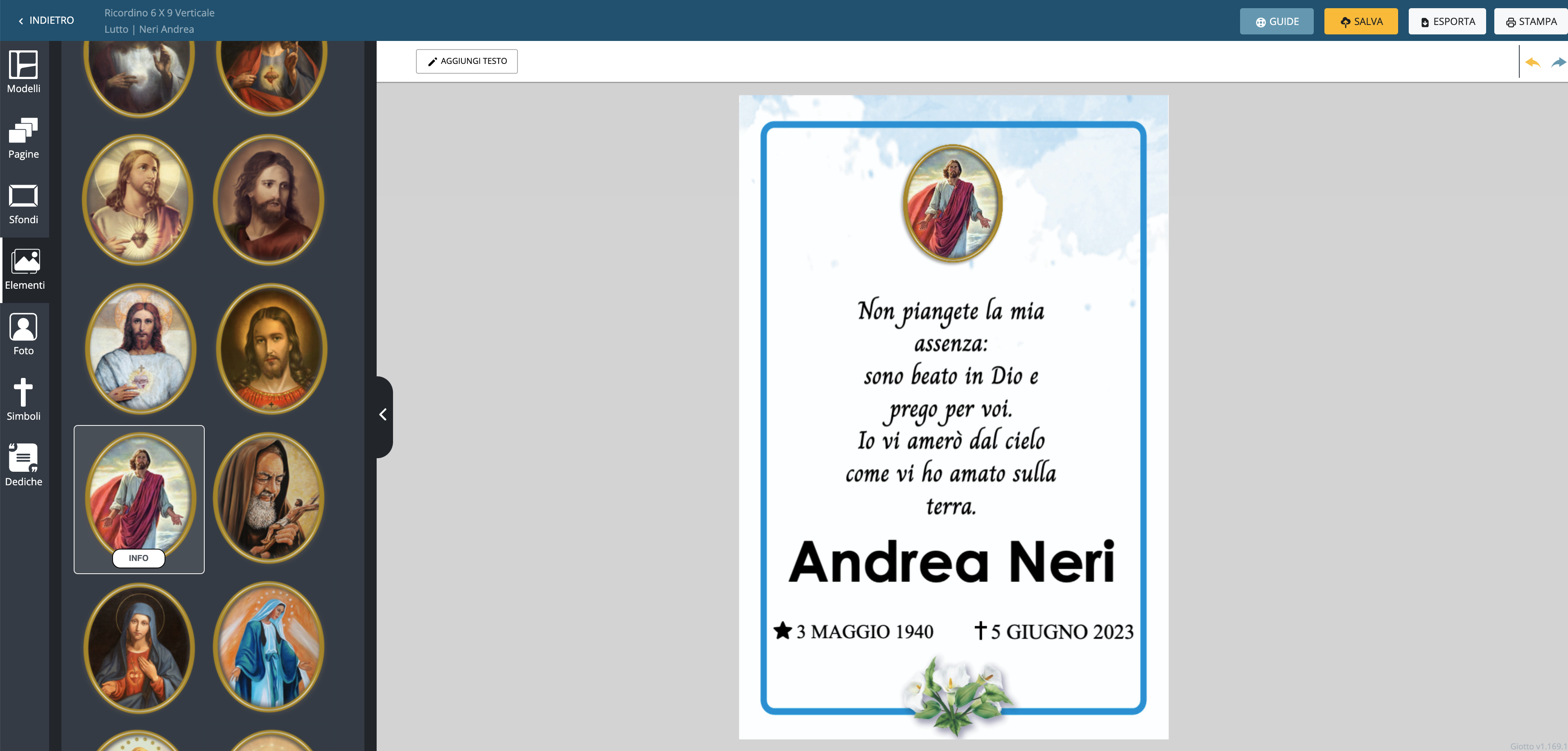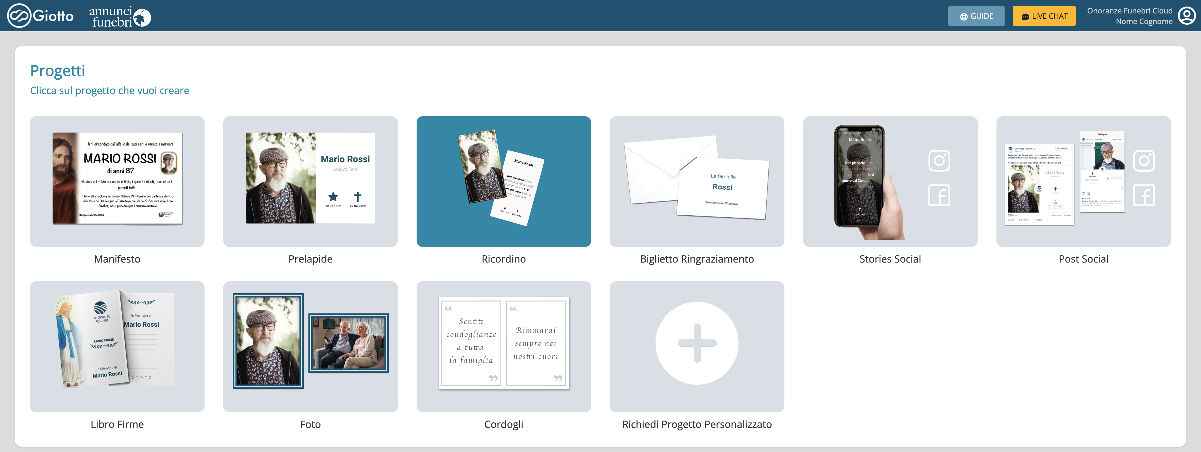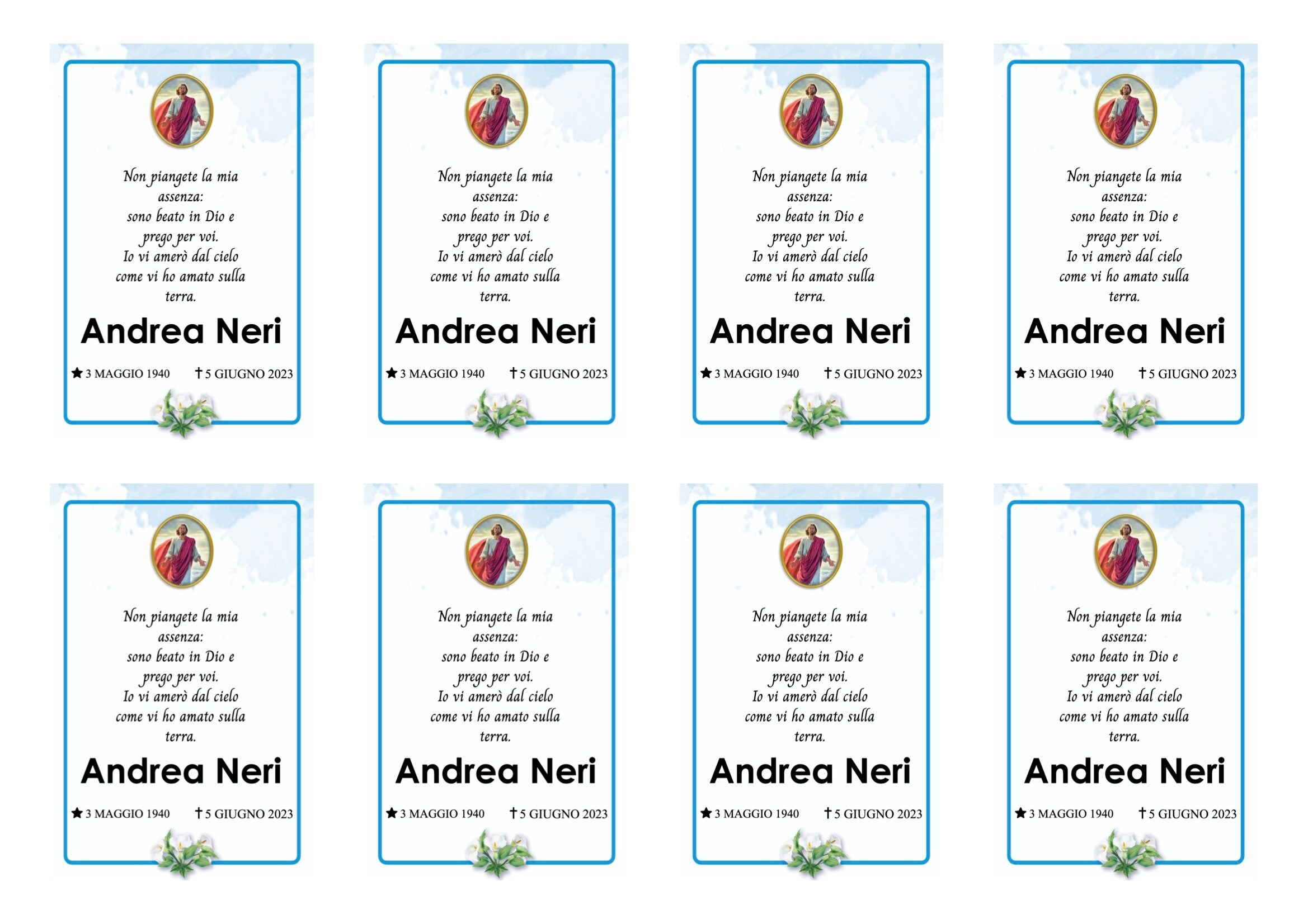 Le scritte autocompilate come Nome, Cognome, Data di nascita e Data del decesso compariranno all'interno del ricordino.
