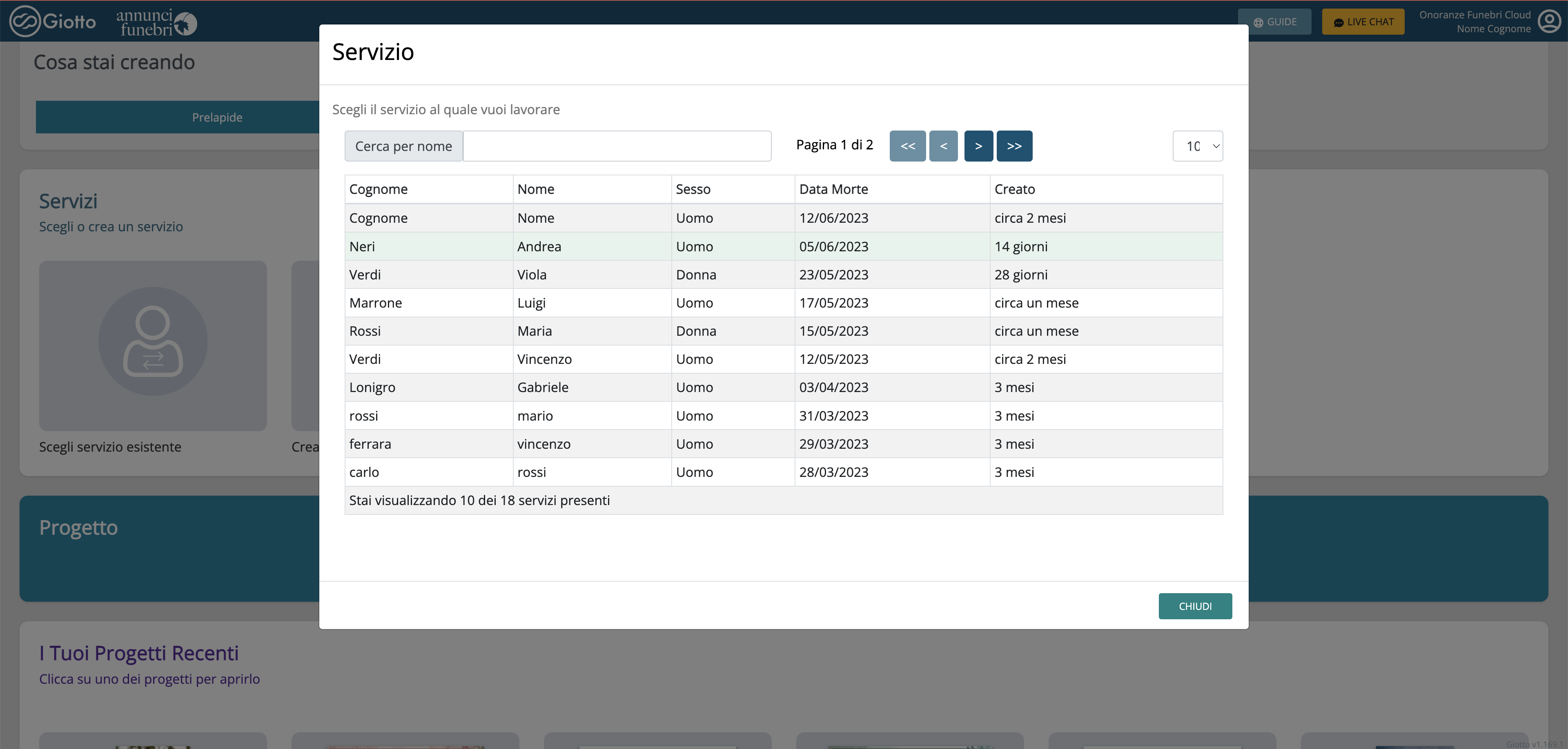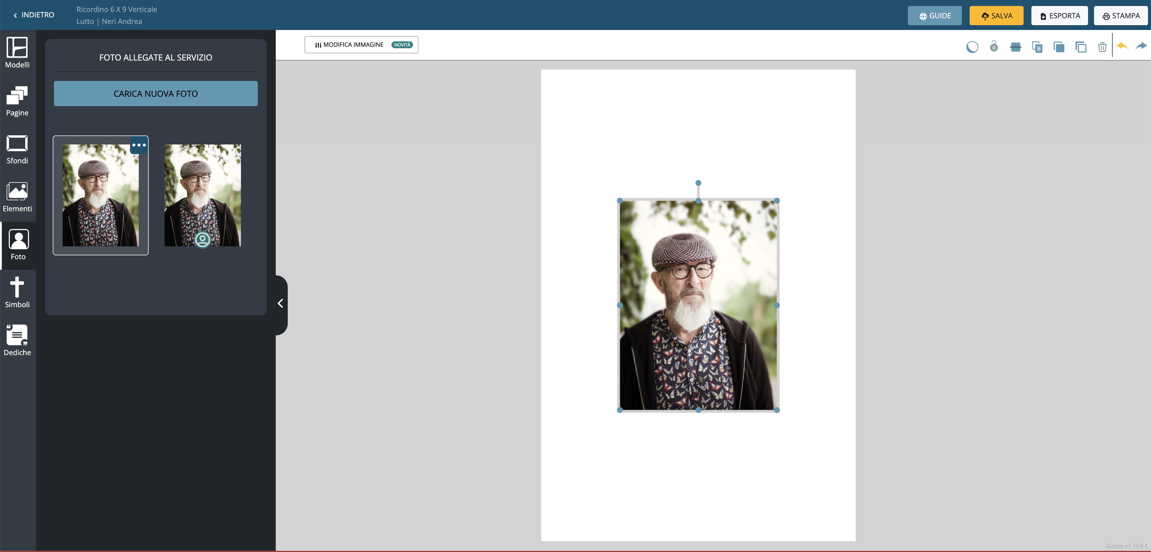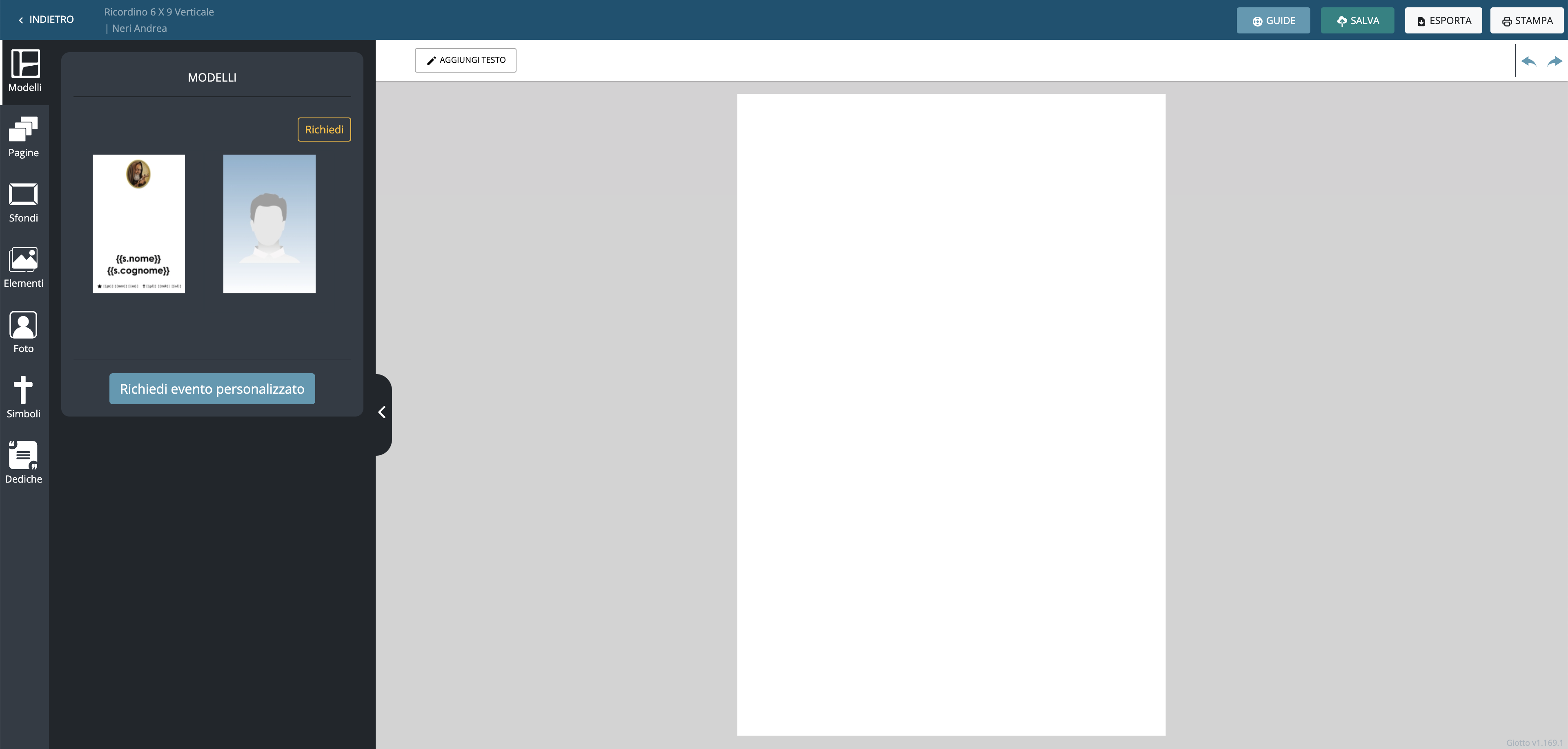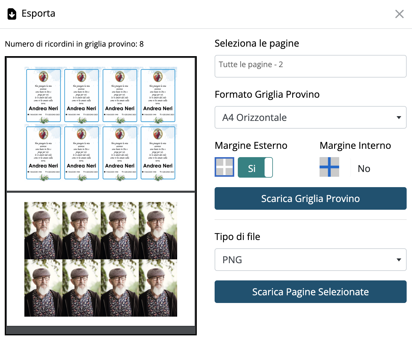 Le scritte autocompilate come Nome, Cognome, Data di nascita e Data del decesso compariranno all'interno del ricordino.