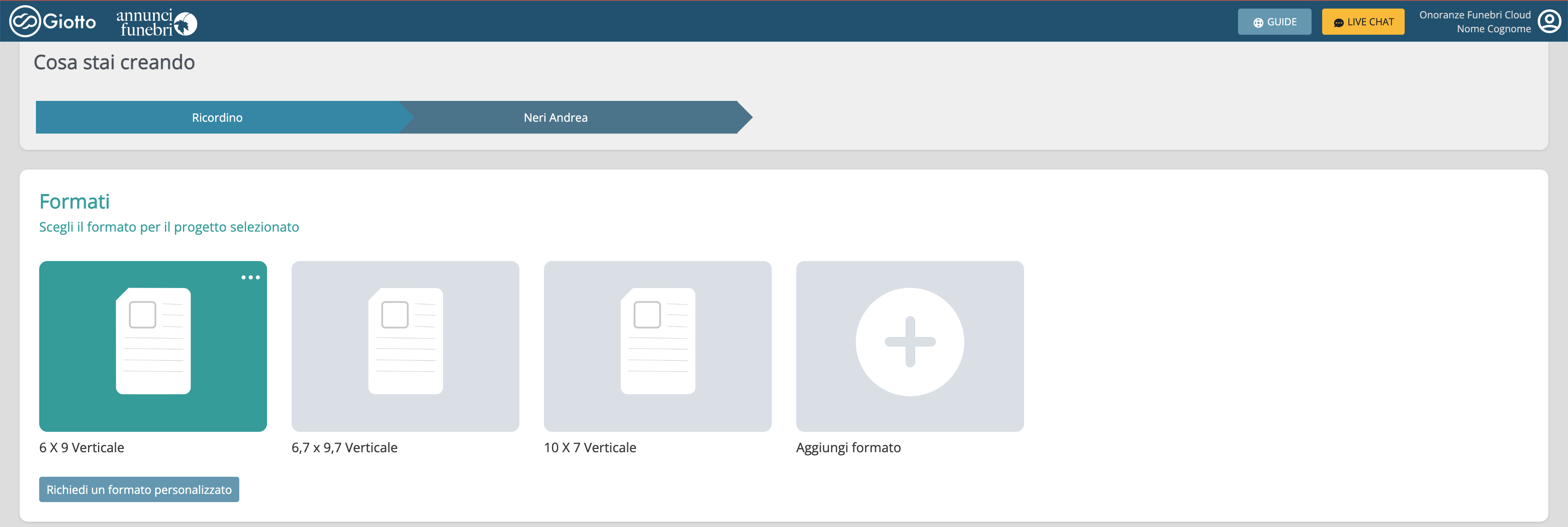 Clicca sul bottone Seleziona un formato e seleziona dalla lista il formato che vuoi utilizzare.