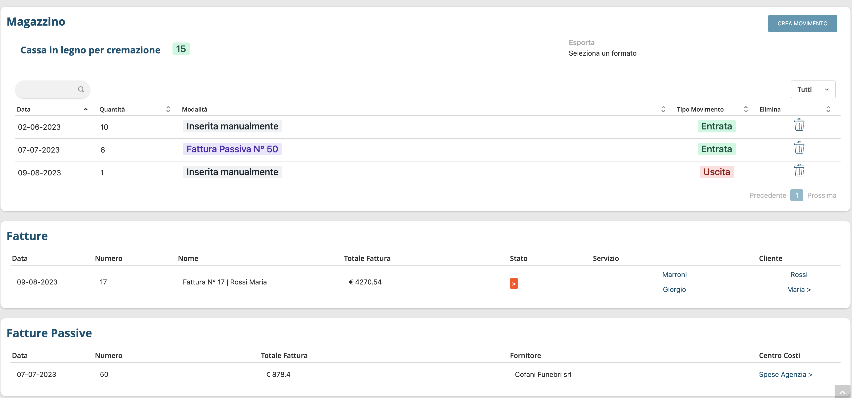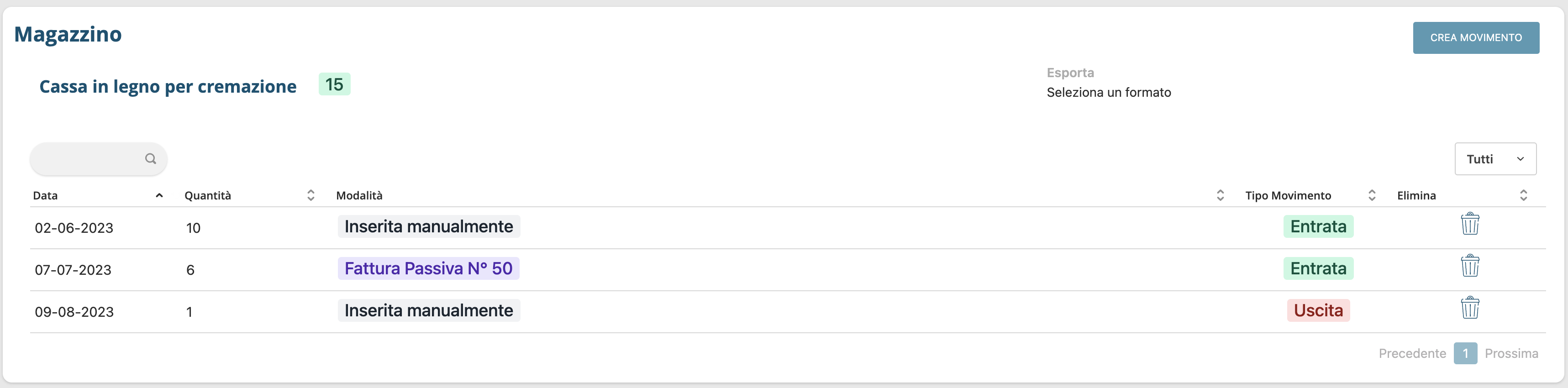 Nella pagina di dettaglio del prodotto potrai vedere i movimenti del magazzino per il prodotto relativo.