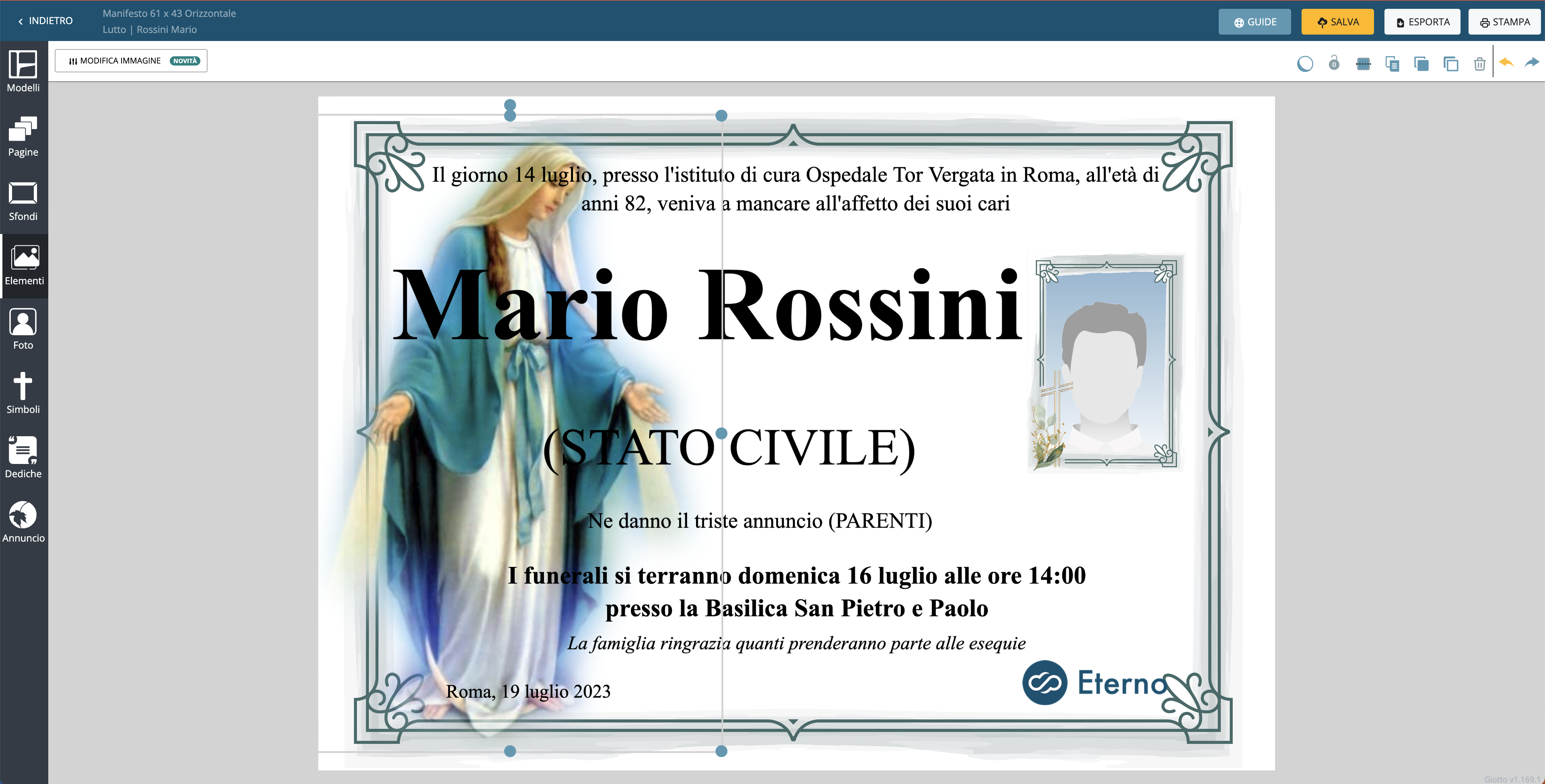 Usa questa funzione se ad esempio, vuoi utilizzare un'immagine sacra come sfondo del manifesto.